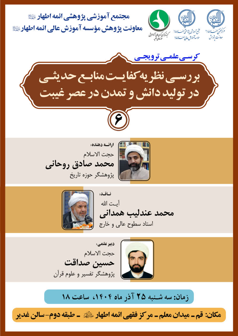 برگزاری کرسی علمی ـ ترویجی با موضوع بررسی نظریه کفایت منابع حدیثی در تولید دانش و تمدن در عصر غیبت